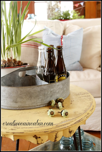 LOVIN those slipcovers. They sure brighten up your cozy room. And that little yellow round table in front of the sofa…too cute!!! I wish I could move in. Your style is so warm and inviting and comfy!! Love it!