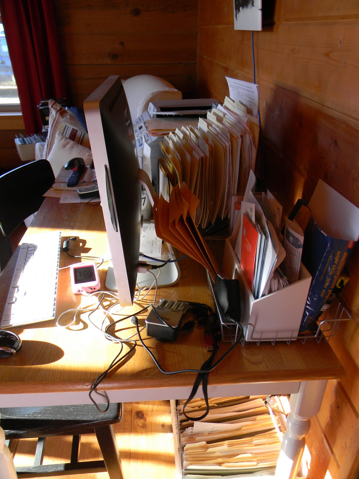 Welcome to my messy home office/guest room.  Today is the day I will move all my 2010 files to storage and start fresh with 2011.  Yeah!! no more paper cuts trying to cram one more receipt into its given file.  By December everything is so full that I actually look forward to getting it organized and fresh again.