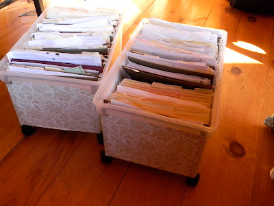 Here they are all packed up ready to put into storage.  Will have to hang on to them for seven years. (The only thing I keep around for seven years is the Husband, The Kid, and Receipts for the IRS.)