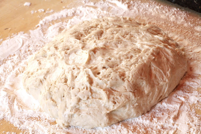Take dough from the bowl and place on a heavily floured surface.