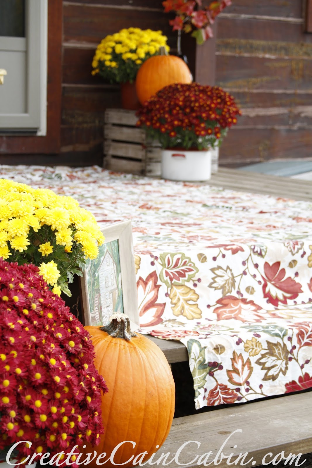 Your porch looks beautiful and so very fall-ish! I love the floor cloth that is on it, too. You always have such good and thrifty ideas. Thanks for sharing them.