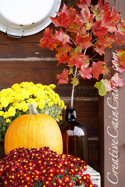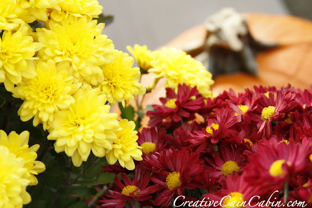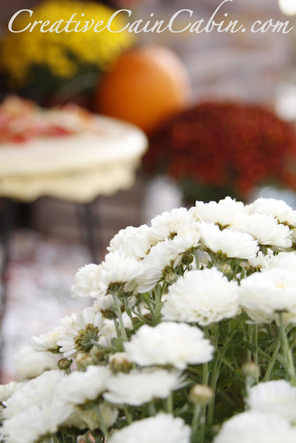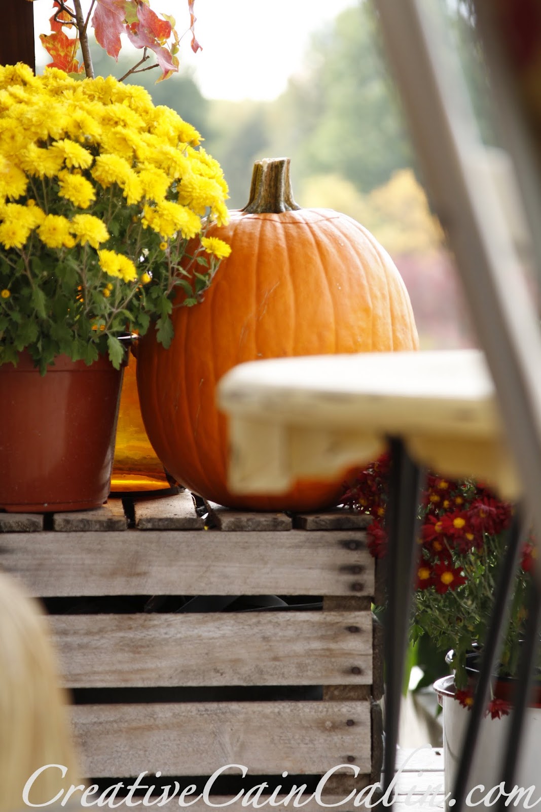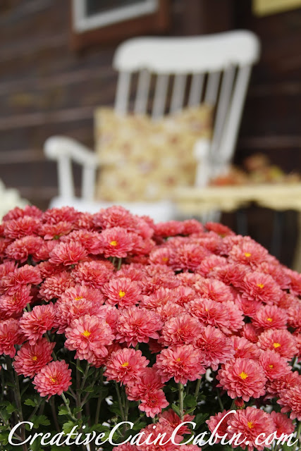 So far this has been the only Fall decorating I have done. A few mums and pumpkins on our side porch.