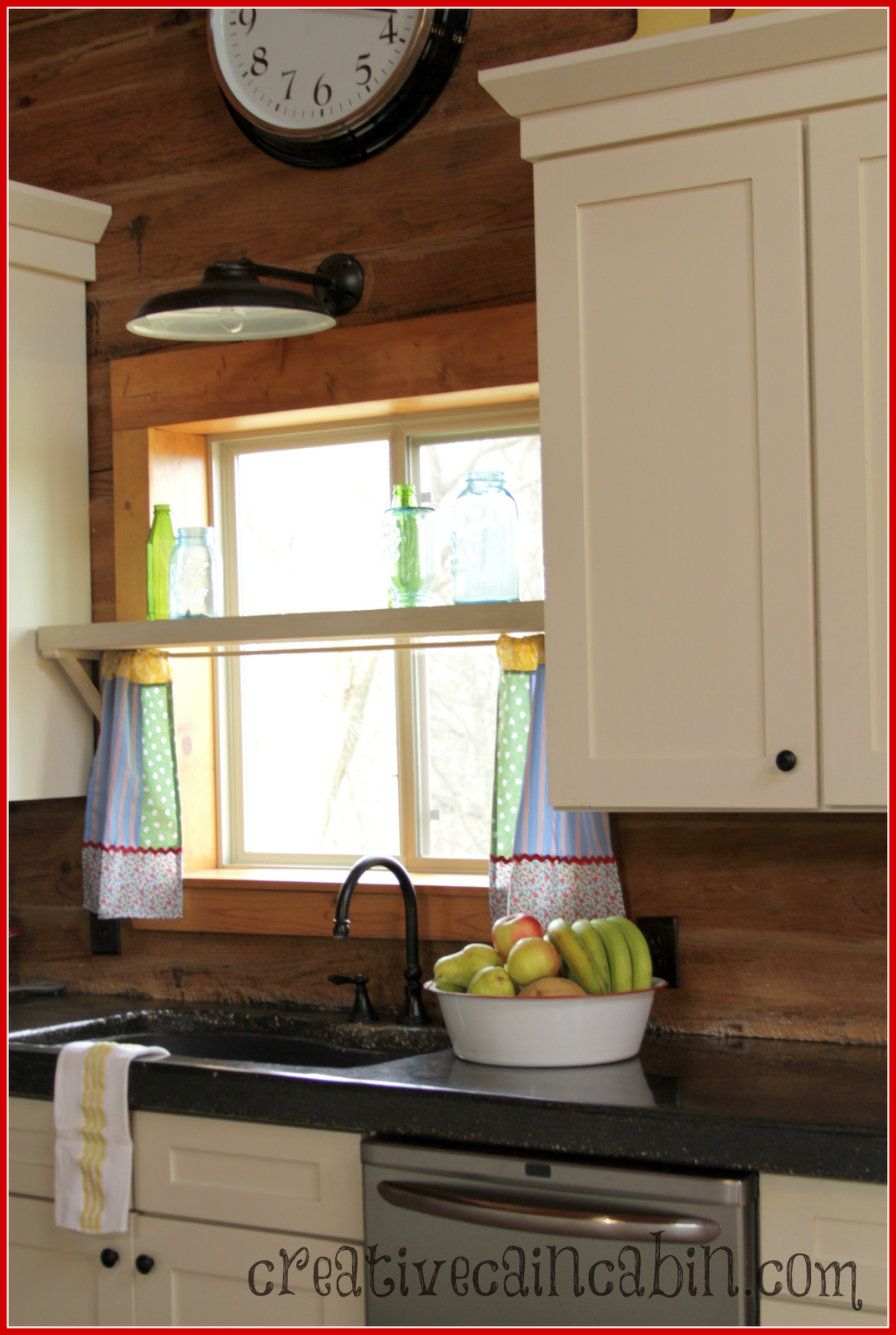 Cute, cute! The curtains and the shelf are perfect and very cheerful!