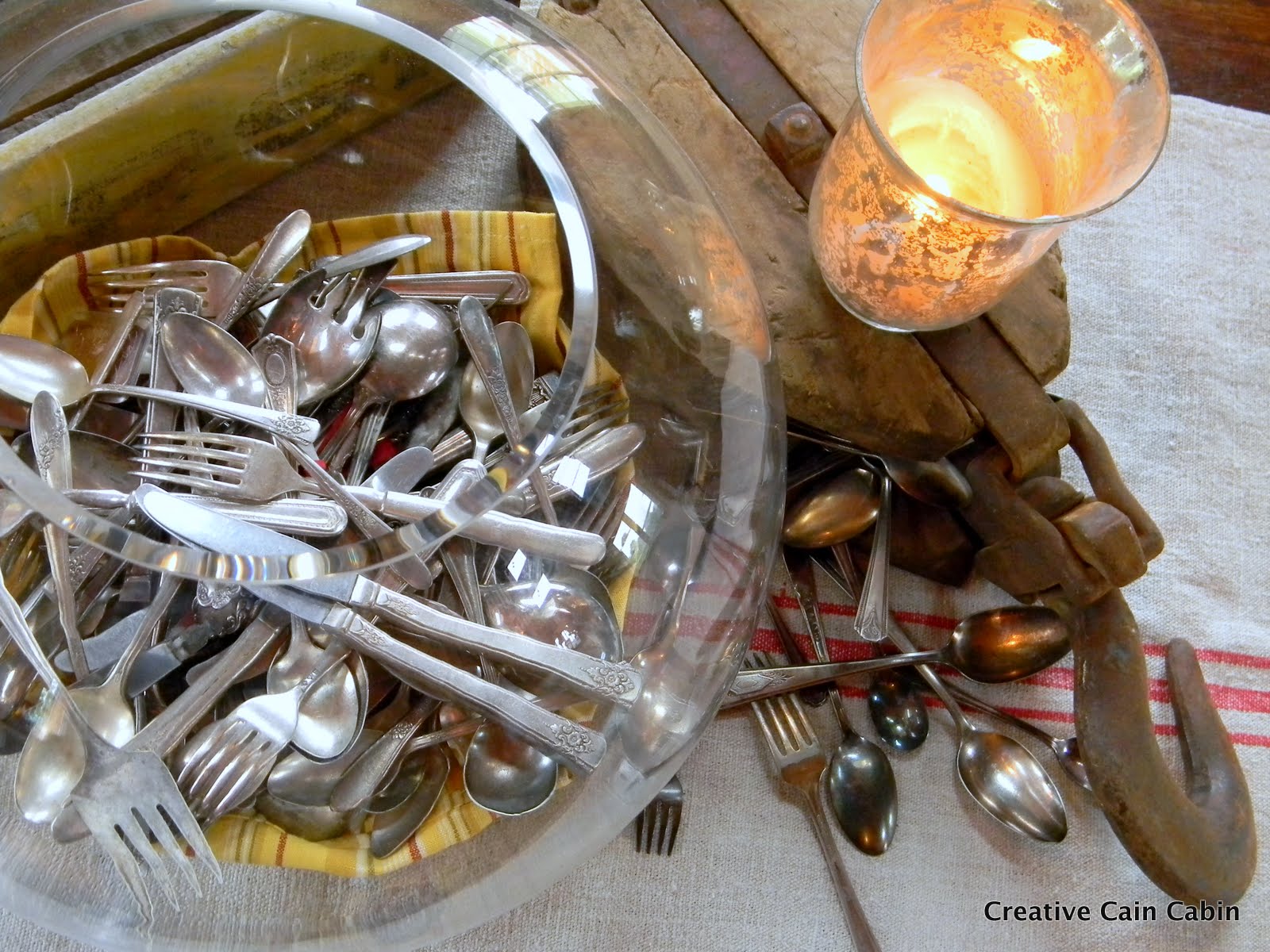 I LOVE them in the bowl!! And you could make recipe card holders with forks. Have you seen those. You bend the tines so that it will hold a card, and the handle is bent too so that it will stand. Great find!!!