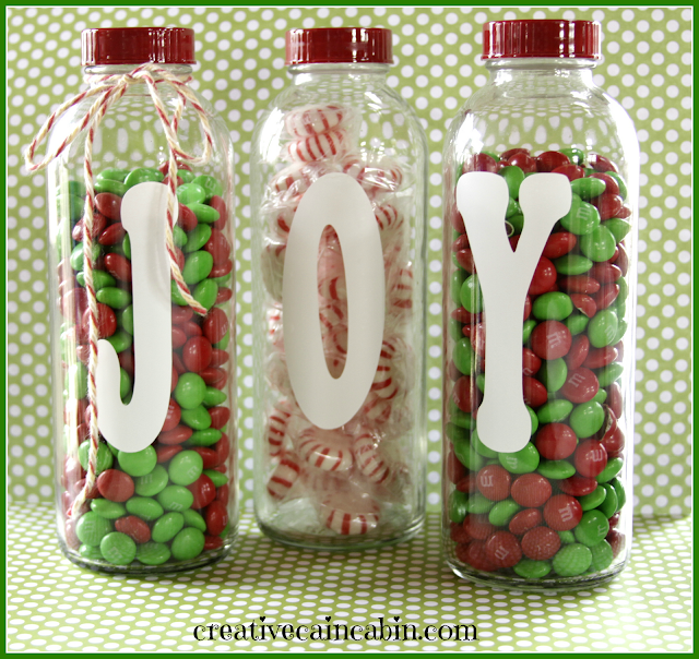 I may need one?? Love those bottles. My daughter drinks it too, so I will have her save me some bottles. But I have a wonderful glass jug that I got at the apple farm that my cider came in. I think that would be pretty with the letters too!!!