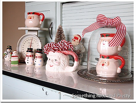 with here Hoosier cabinet all decorated with a charming collection of Santas.