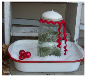 with her frugal Christmas lanterns. I just love the rick rack around the jar.
