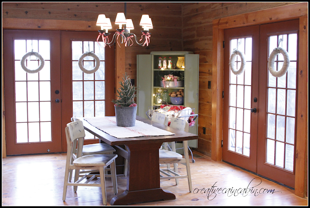 Your dining room looks so pretty,and festive.I love your little cute tree on the table.