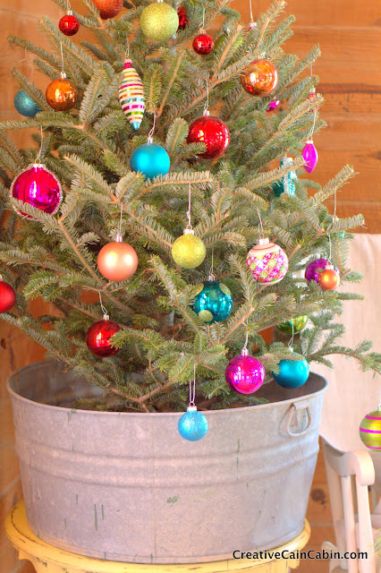 What fun ornament colours, Dawn. Love the little tree in the crock (I have wanted a crock for years!) and the one in the galvanized tub. Fabulous and so very pretty and festive.