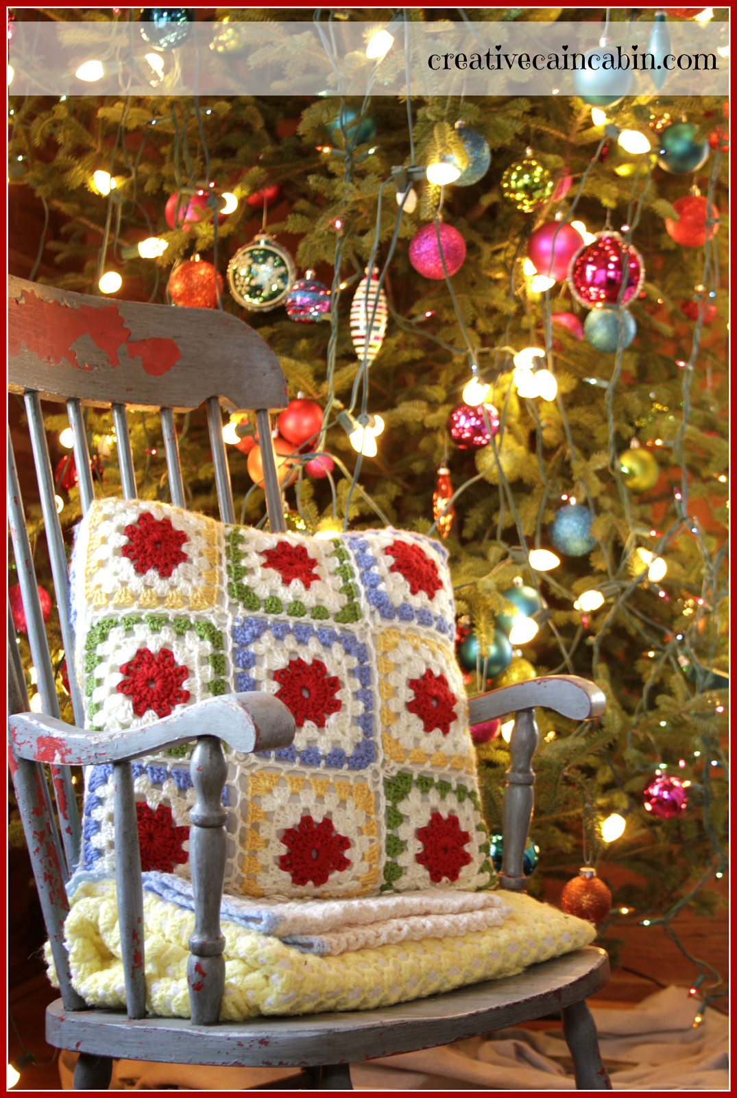 15. Love this! I wish I knew how to make these squares. I only learned how to crochet just a little a few years ago. I can tell from your tree in the background that we have the same colors of ornaments on our trees 🙂