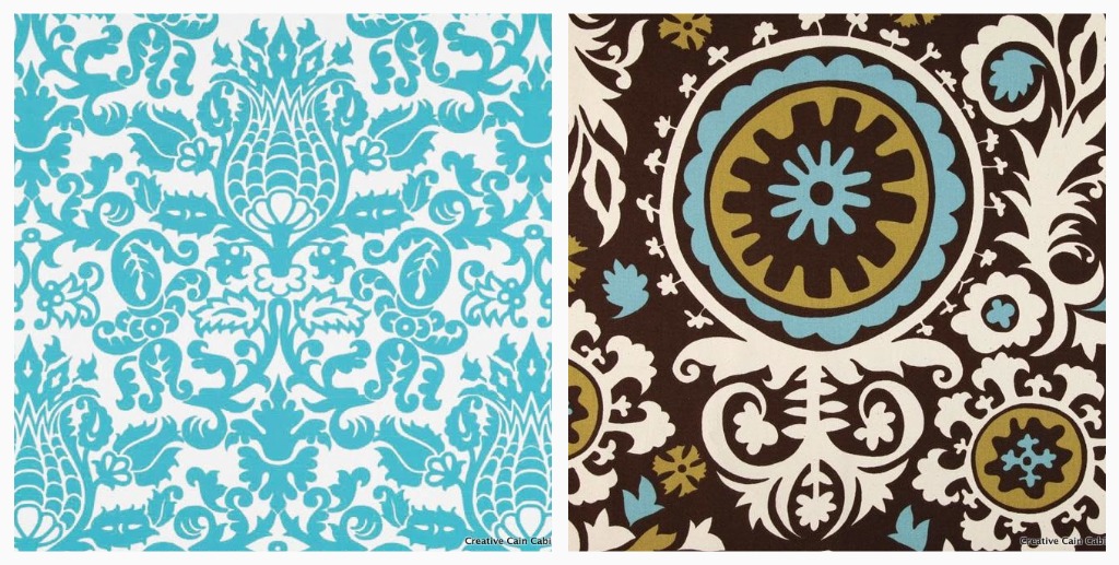 Can you tell me where you got the fabric for the turquoise, brown, and gold for the pillows. I love it!!