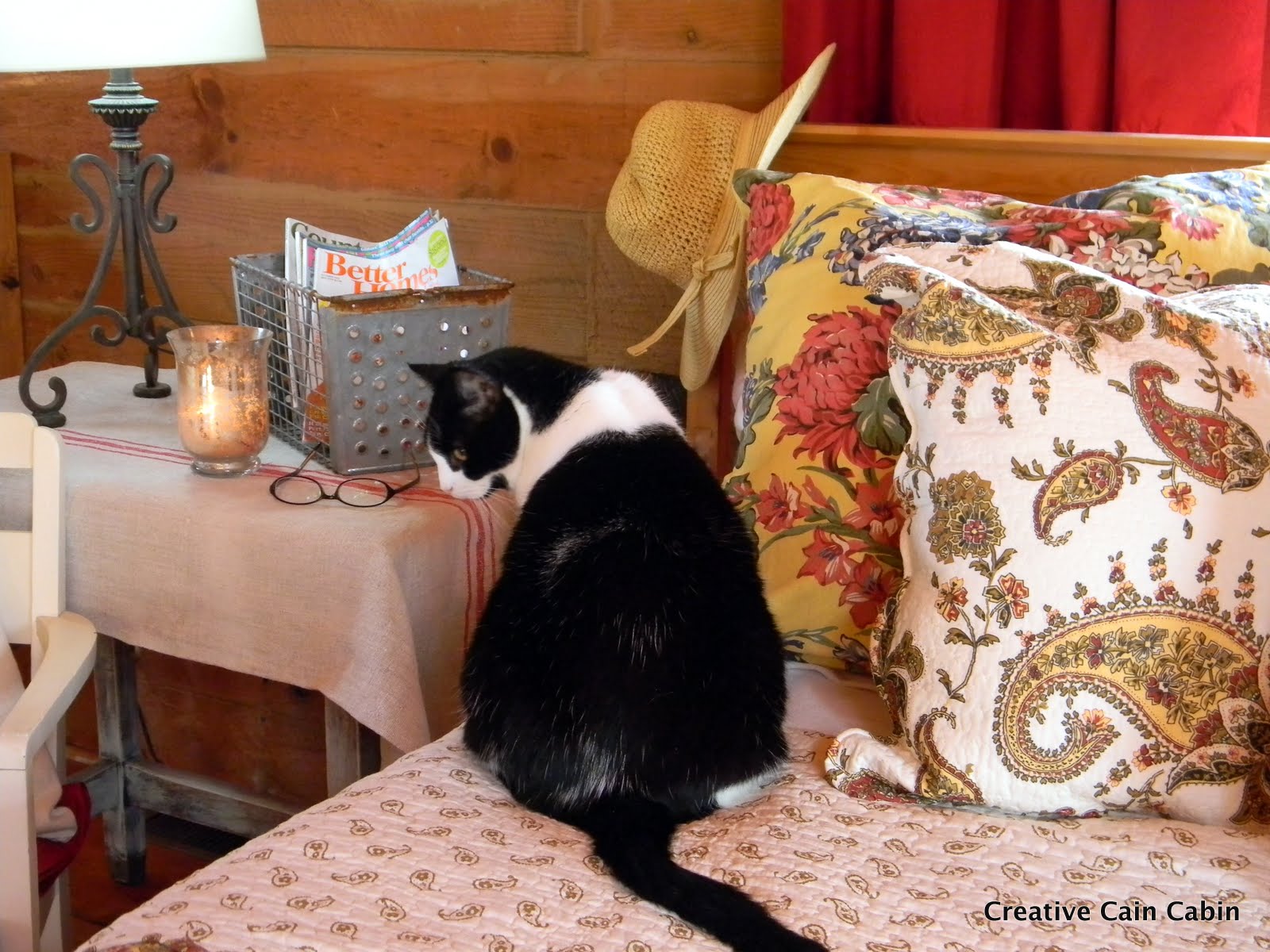 What a beautiful bedroom you have, Dawn. I change my bedding twice a year, so you have me beat. (There are more than two seasons, right? hehehe) Love your kitty.