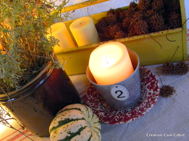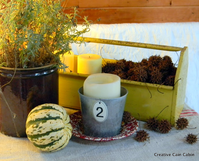 I like to use thing in nature that I find, and small pumpkins and squash that can also be turned into dinner at some point.