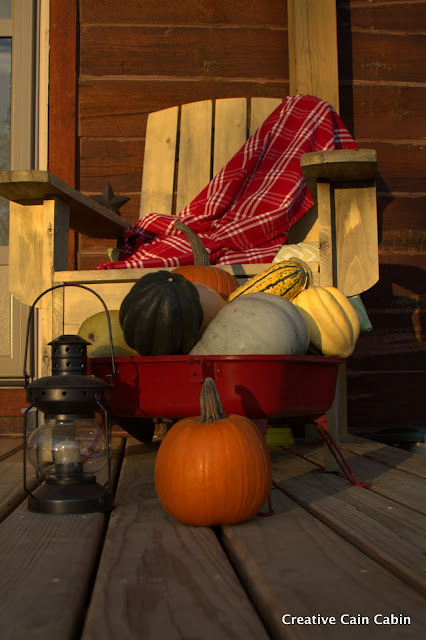 Dawn, your porch looks so nice! I love the plaid throw, the chalkboard and all of those pumpkins and gourds. Very pretty!