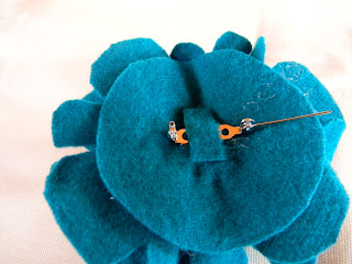 Here’s where you use that little piece of fabric, just glue it over the back side of the pin to tidy it up.