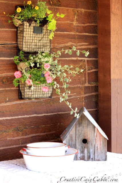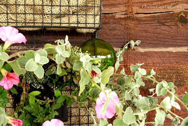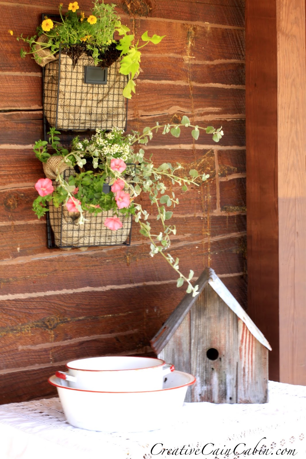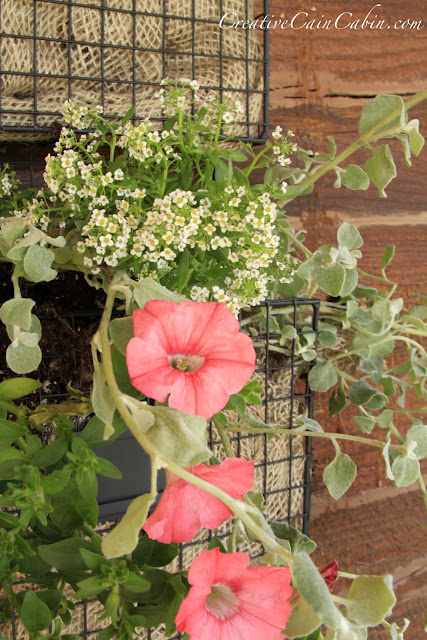 The outside of our log home has a dark stain and I though using it as a planter would bring some lighter colors and visual interest into the mix.