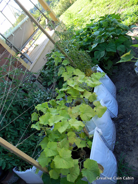I pulled the beans and cucumbers today and replanted, they were done producing and I have time for another planting. If you missed the original post telling where to get the supplies and how to create a Veggie Garden in a Bag click here