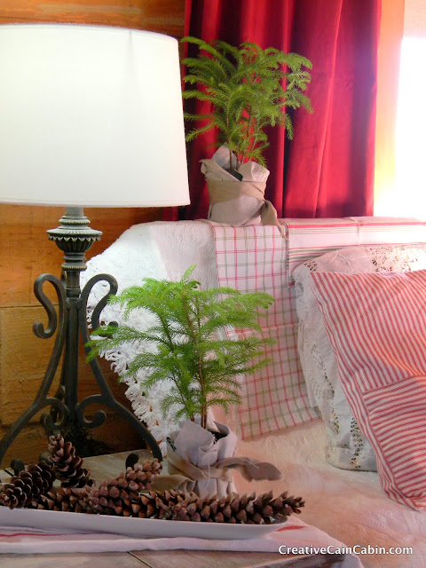 Love it, love it, love it! Your room looks so cozy and inviting! And your little trees add a touch of nature! I like your version much better than the inspiration photo!