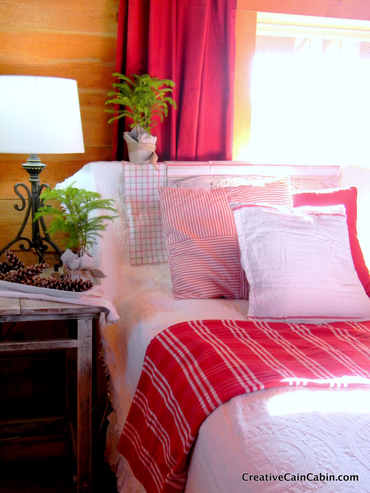 Great copy, Dawn! This is totally the style we love and must feel so cozy. Your coverlets and pillows are so pretty. We are trying to achieve a lodge like feel in our basement guest bedroom and I am bookmarking this post for inspiration. I hope to be able to paint out the blue walls for white in the early new year. Way more versatile to add red with white walls (although I would love your wood.)