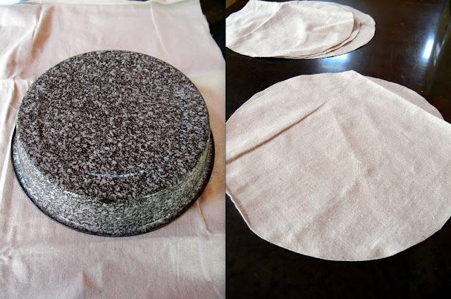 I gathered up a drop cloth that I already had on hand and found a pan that was the same size as the stool top.