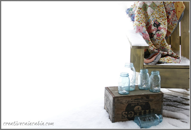 I love your photos and the quilt just goes together so well with the ball jars and crate!