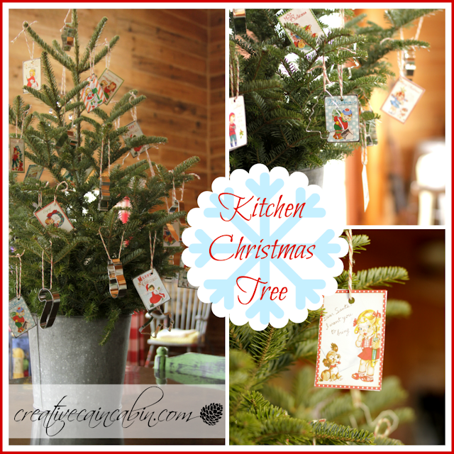 I love your kitchen Christmas tree and how you have them decorated.Too cute with those vintage cards and cookie cutters. I have been looking for a couple of small live trees but have had no luck. So I will just enjoy looking at yours. Merry Christmas!