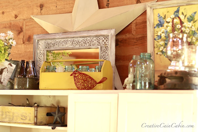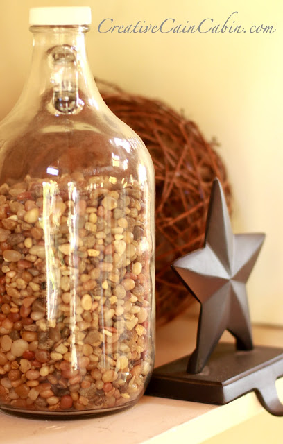 The mantel is decorated with whatever I have on hand at the moment.
