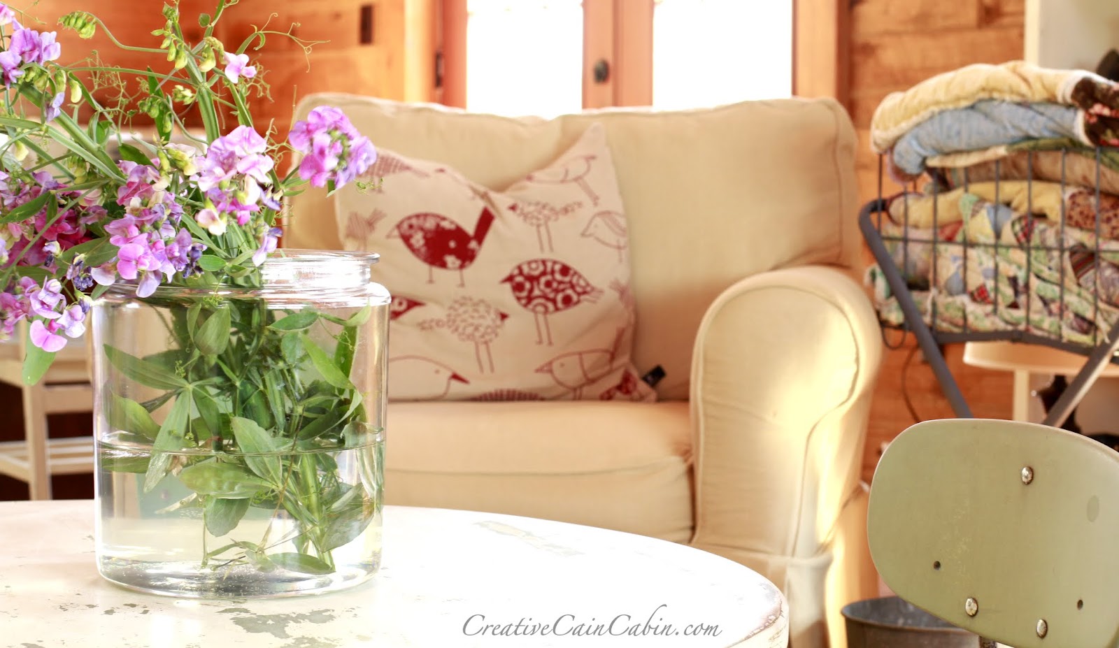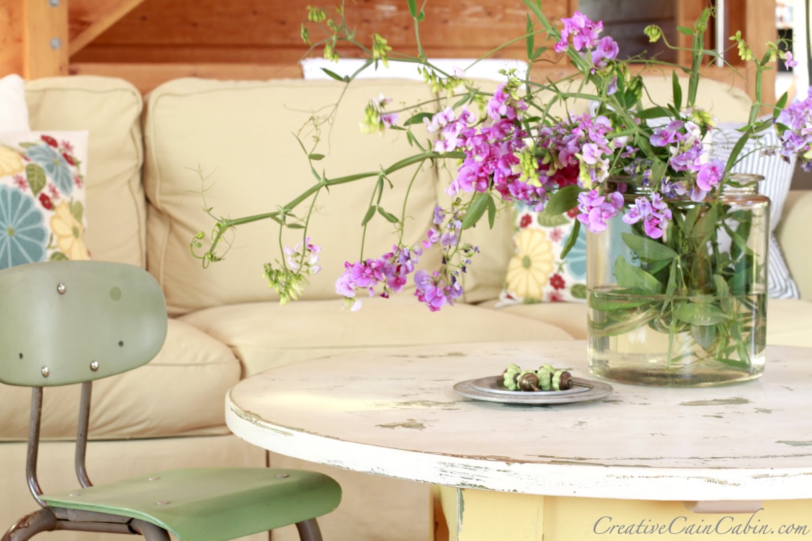 I love all your pretty pillows. The butter yellow slipcovers are beautiful. The flowers look so pretty on your table.