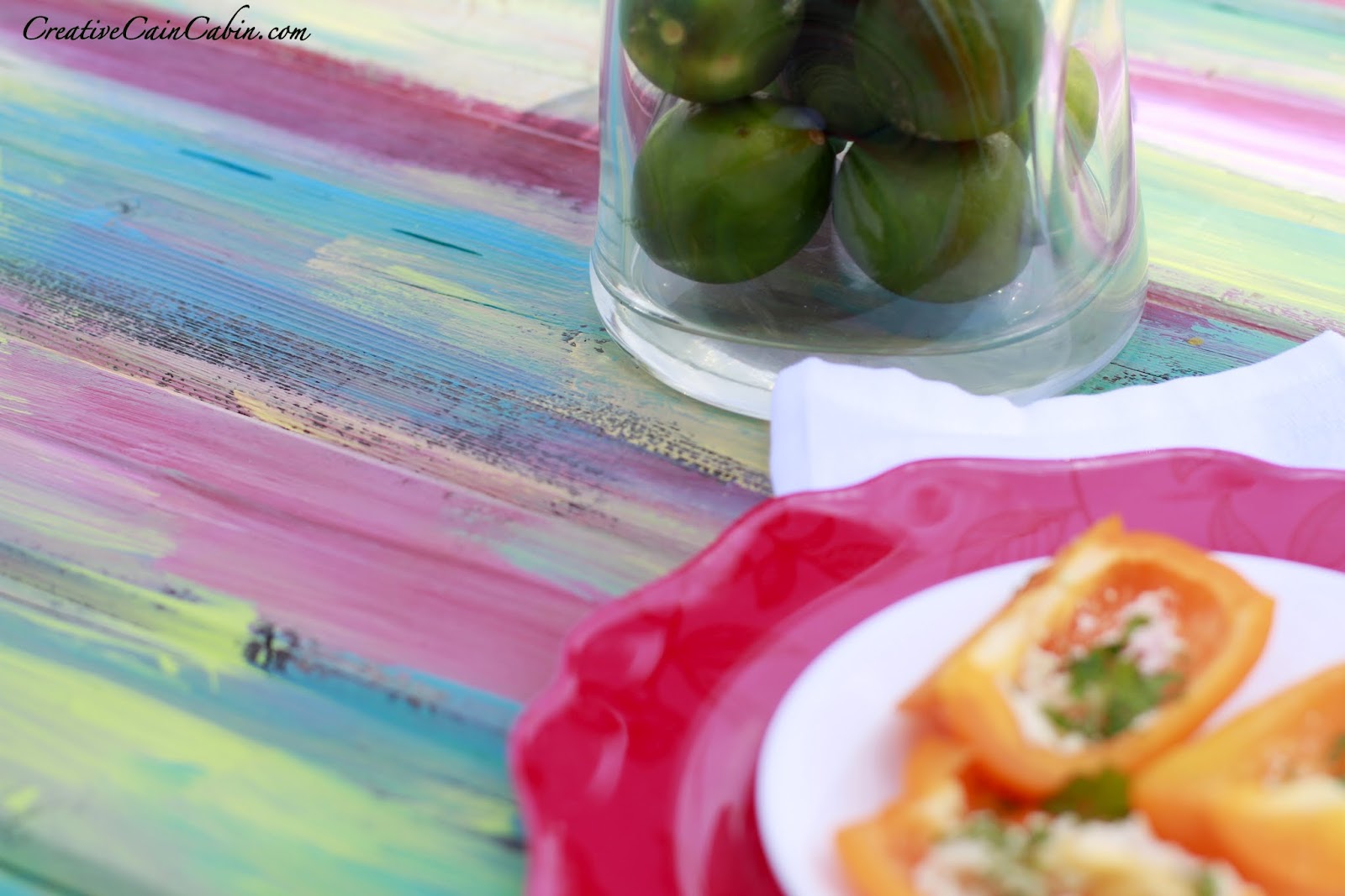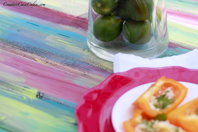 Oh I love it Dawn! Such a pretty change from a traditional picnic table. Ours is stained a blue and I love it. Your peppers looked yummy!