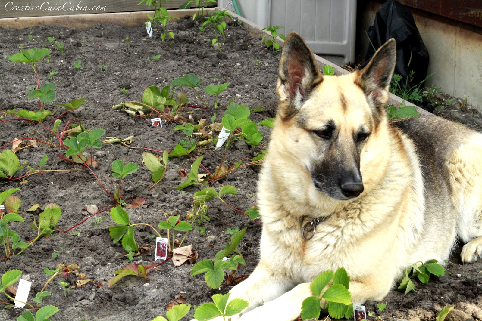I now know the culprit.  I caught our dog using the strawberry bed as a dog bed.