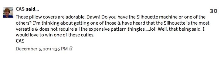 Congrats to the winners! I know they will love the pillows!