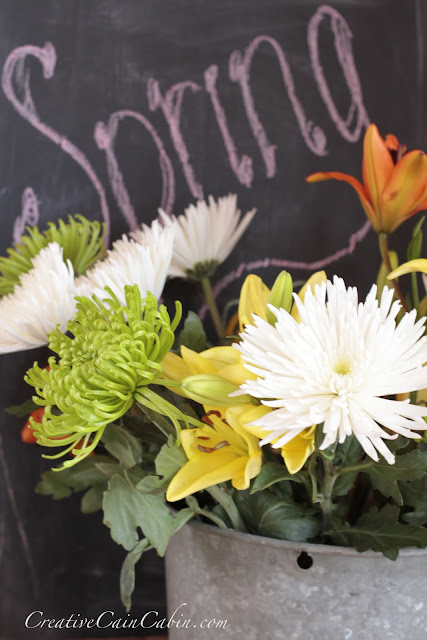 Love your bucket of flowers, and the chalkboard is a great addition!