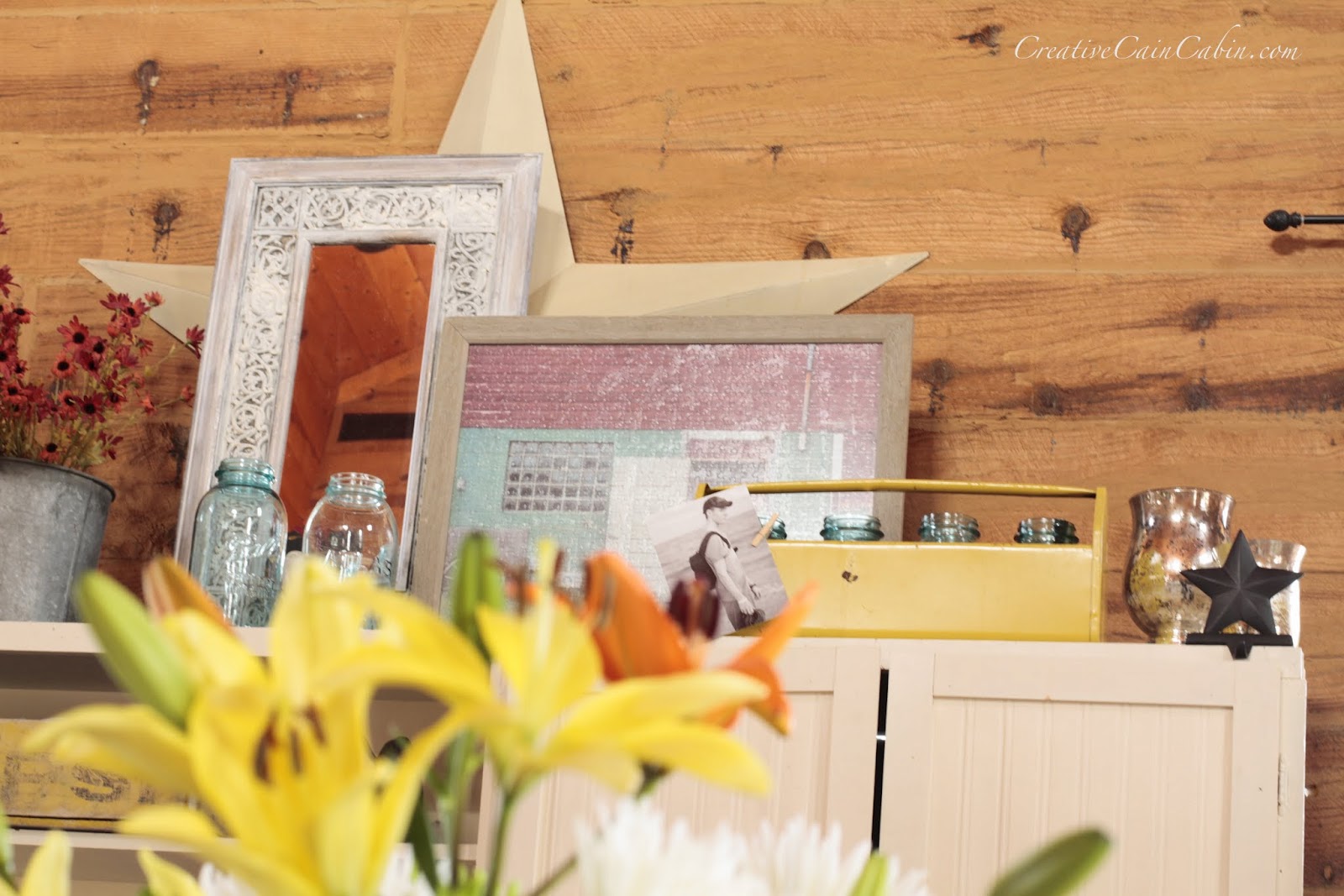 Your mantel is beautiful! I’m all about using what I have on hand. I tend to just shuffle things around and then have a few seasonal items that I store. My mantel is blue and yellow too! I love the old yellow tool box!!!