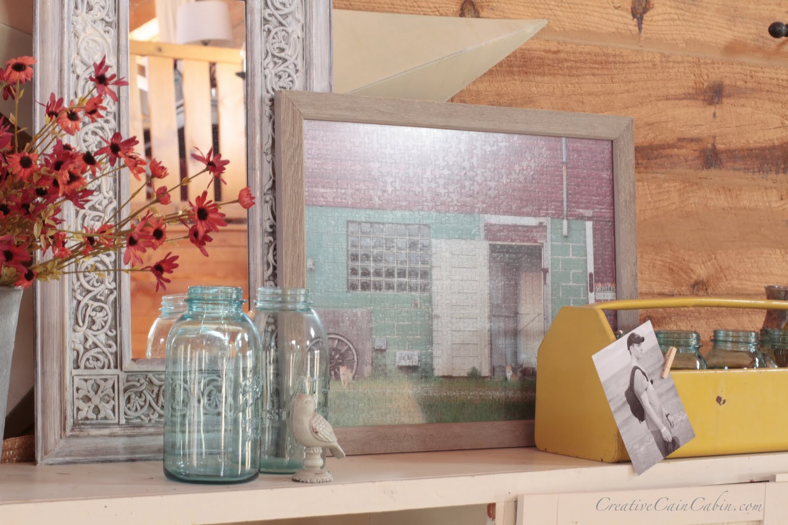 I really like the puzzle your mom and granma did, so nice to have and really added to the mantel, love the ball jars too!