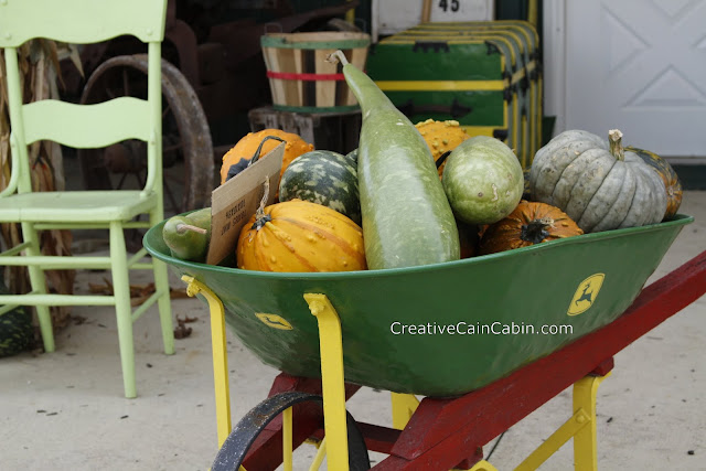 Hi Dawn! Oh, what a wonderful place. I love the John Deer bike and tryke! 🙂 The pumpkins and gourds are just wonderful. Wish I could run in to a sweet place like this.