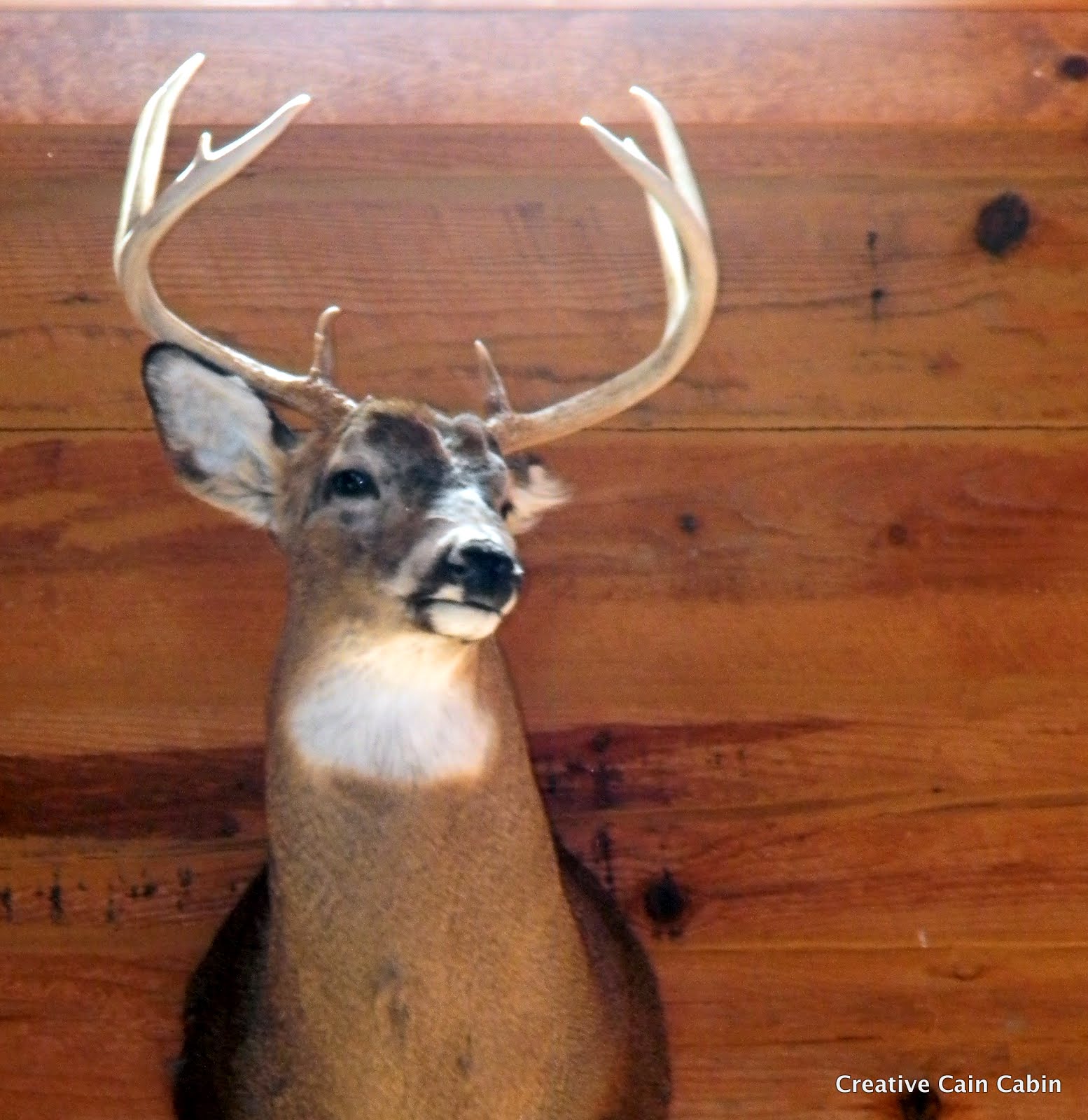 It’s not so bad, it actually fits the style of your home. Just think at Christmas, you hang stuff from his antlers. 🙂 My hunny is a hunter too, I am sure if he shot one like this he would definately want to show it off!