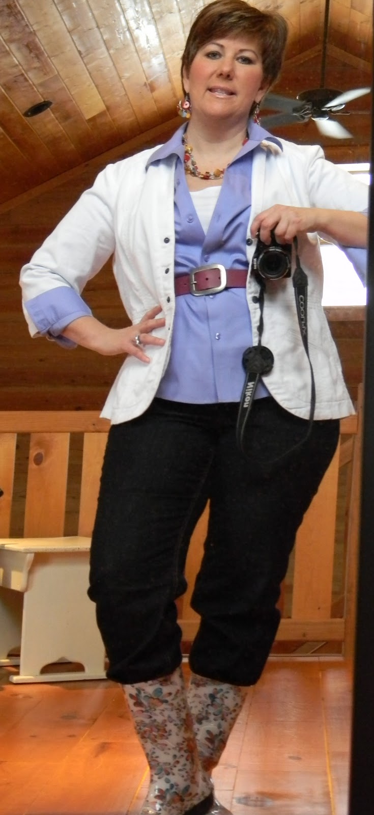 Love the orange/blue together, love the rainboots, and I love the purple outfit for the golf show! 🙂 Cute outfits again this week