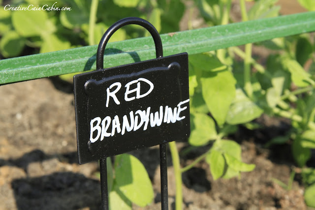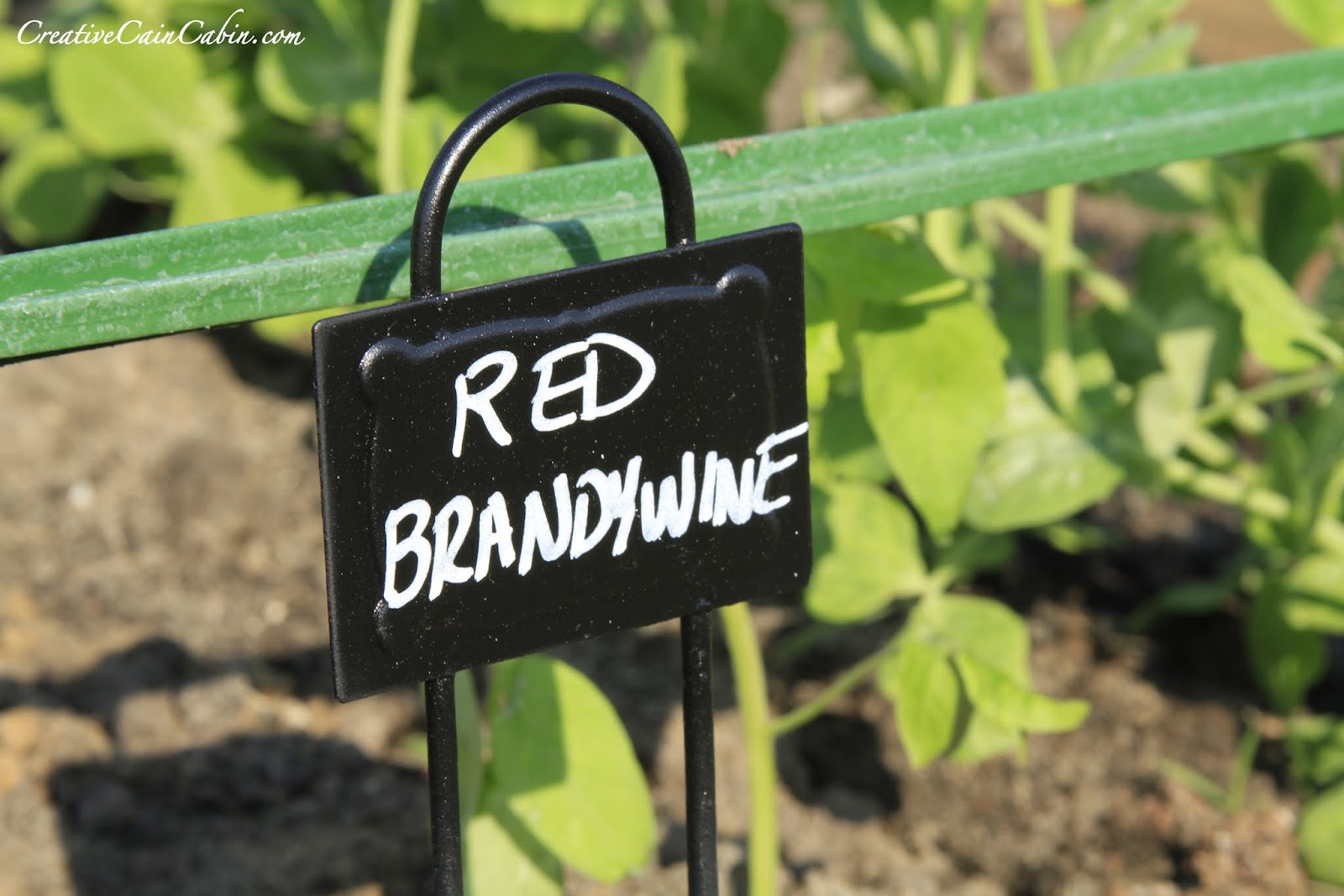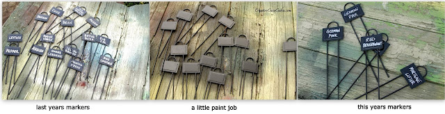 So I recycled last years plant stakes. A quick coat of black spray paint and I was back in business. I used a white paint pen to add the tomato variety to the marker.