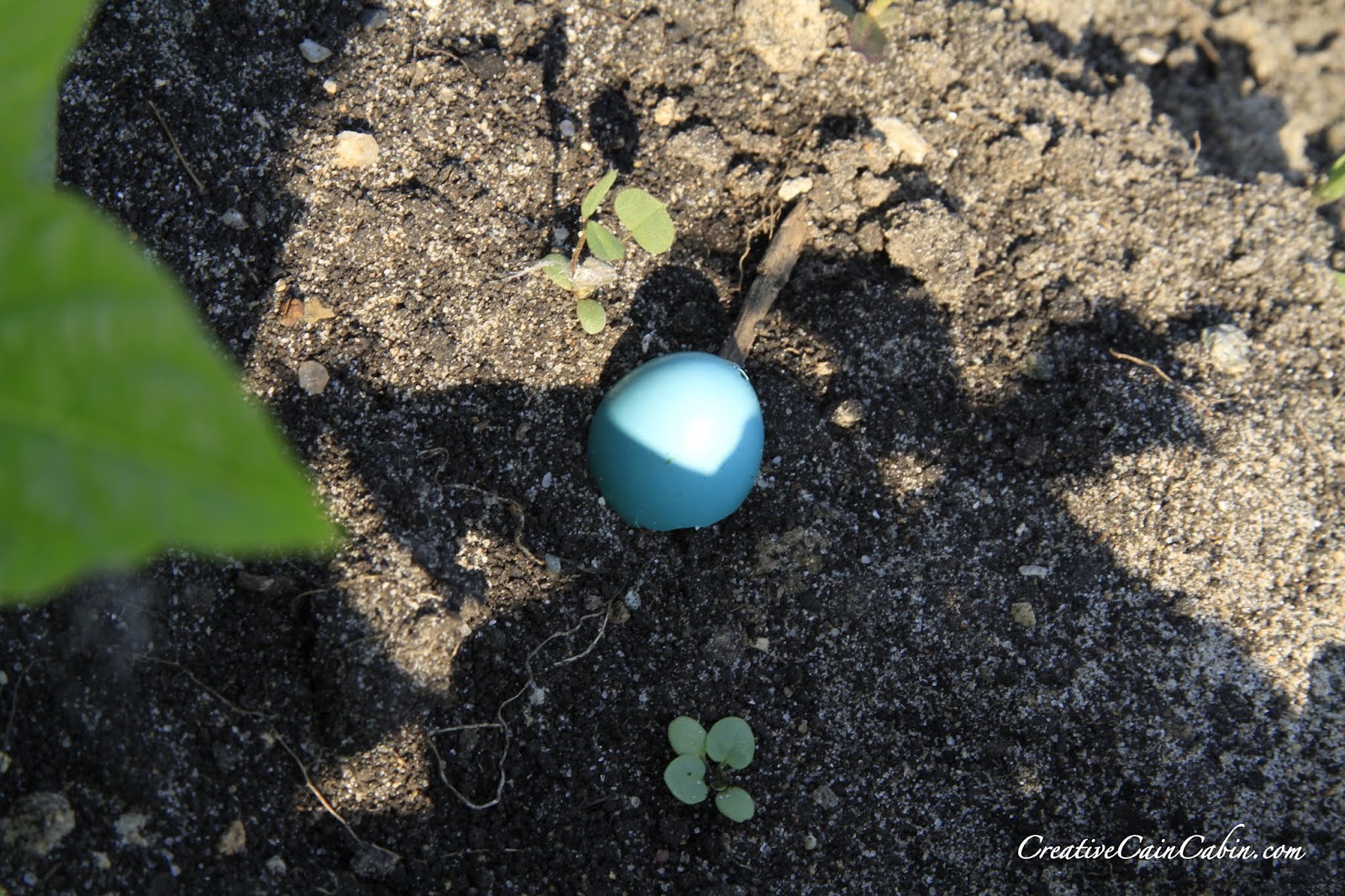 While planting the tomatoes I found this broken robins eggs. I left it there just because I love the color.