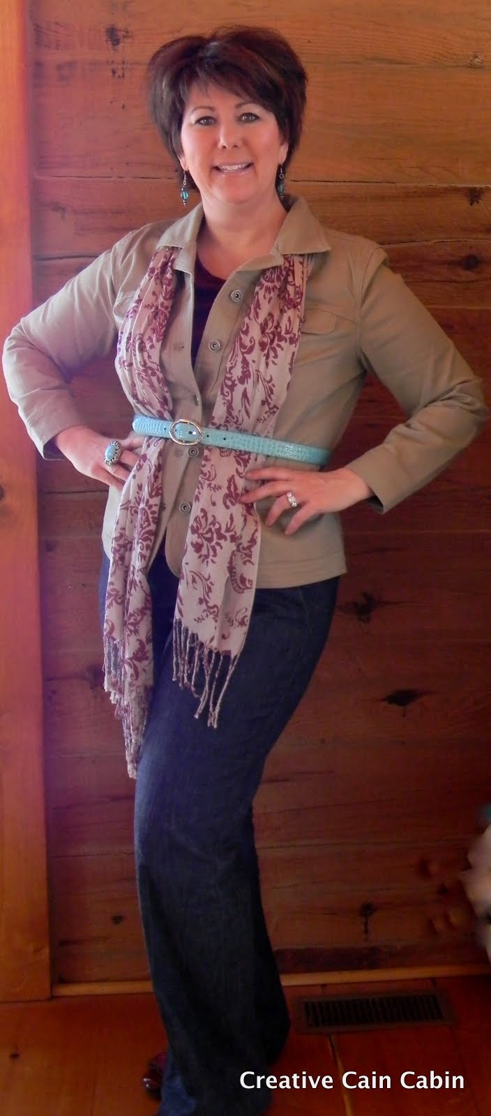 I have a similar jacket from Coldwater Creek- in both tan and one in red. I love them because they can be worn with so many different outfits! I still have to purchase the jean trousers you show wearing- love them!