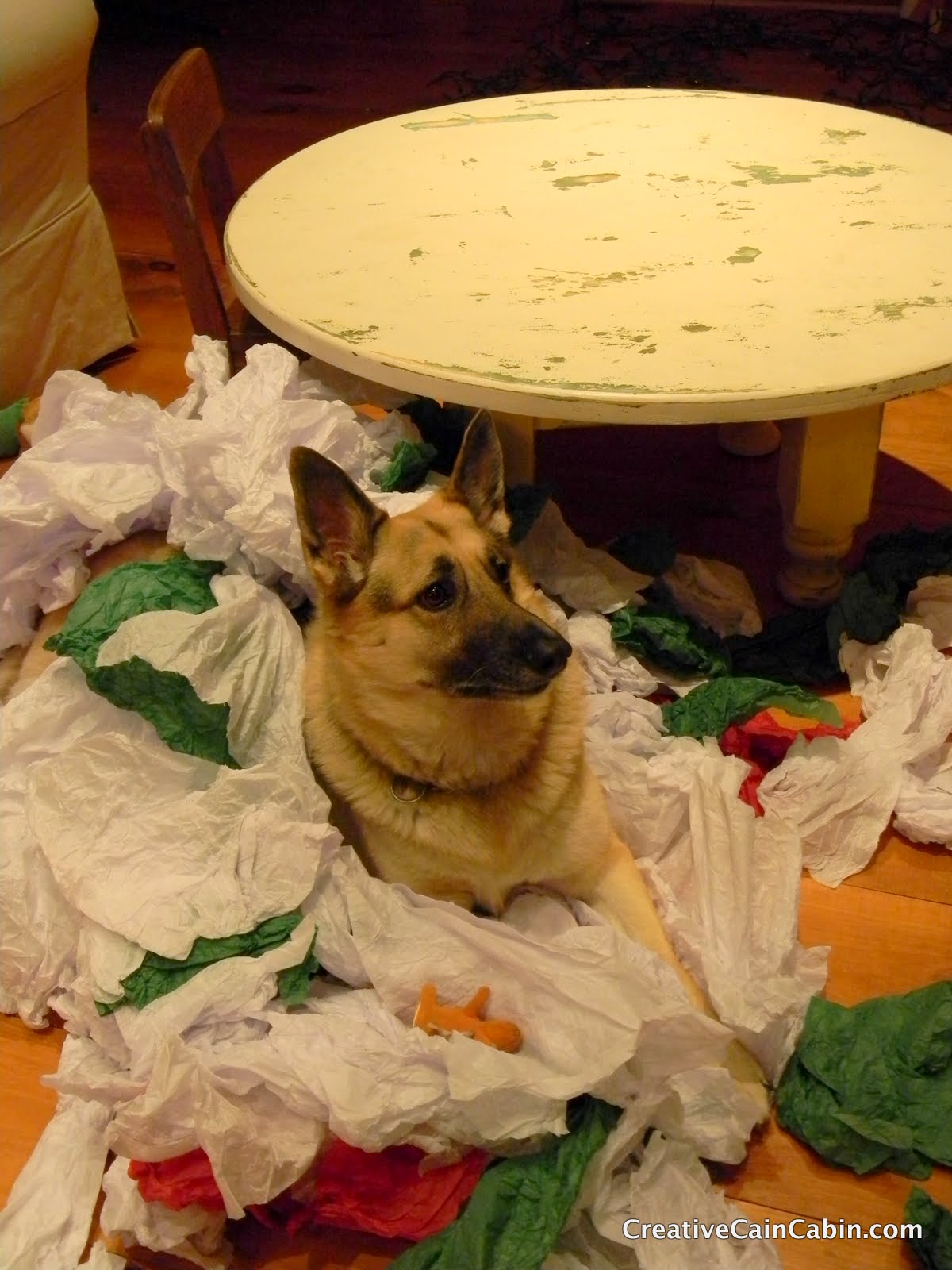 And your doggie looks so adorable amidst the mess of tissue paper! Did you see the talking dog video that has gone balistic? You dog looks a bit like the one on the video. It’s really cute.