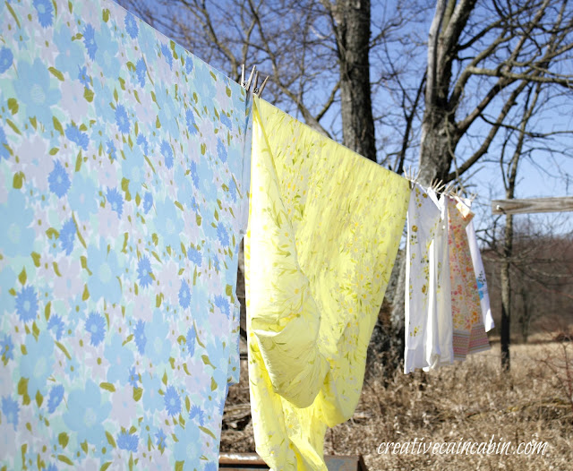 When we moved into our place one of first things I had hubs do was get the clothes lines up. I miss hanging out in the winter but too cold here (west of Grand Junction, CO) to hang out. Its stayed nice enough into Nov. last year to hang some things. Happy Days Enjoy your beautiful sheets and pillow slips.