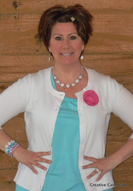 Hi Dawn, I really have enjoyed looking at your color groupings and how well you put your outfits together. I looked at those tanks and ruffled cardis at Land’s End, but never got around to ordering any 🙁 I really like the white necklace and bracelet, and (earrings- I have to wear the more expensive ones since I have sensitive ears, a real bummer) that you made. You are so talented, I would love to know how to make something like that.Jewelry seems interesting since you can create whatever you want, but I have never investigated the idea until tonight looking at some of your’s. I love your log cabin- I have always wanted one ever since I was small I had always wanted to build one on our property ina field, still dreaming about it, lol! I would like to follow your blog and subscribe to your feed. Thanks for sharing your wonderful sense of style with all of us.
