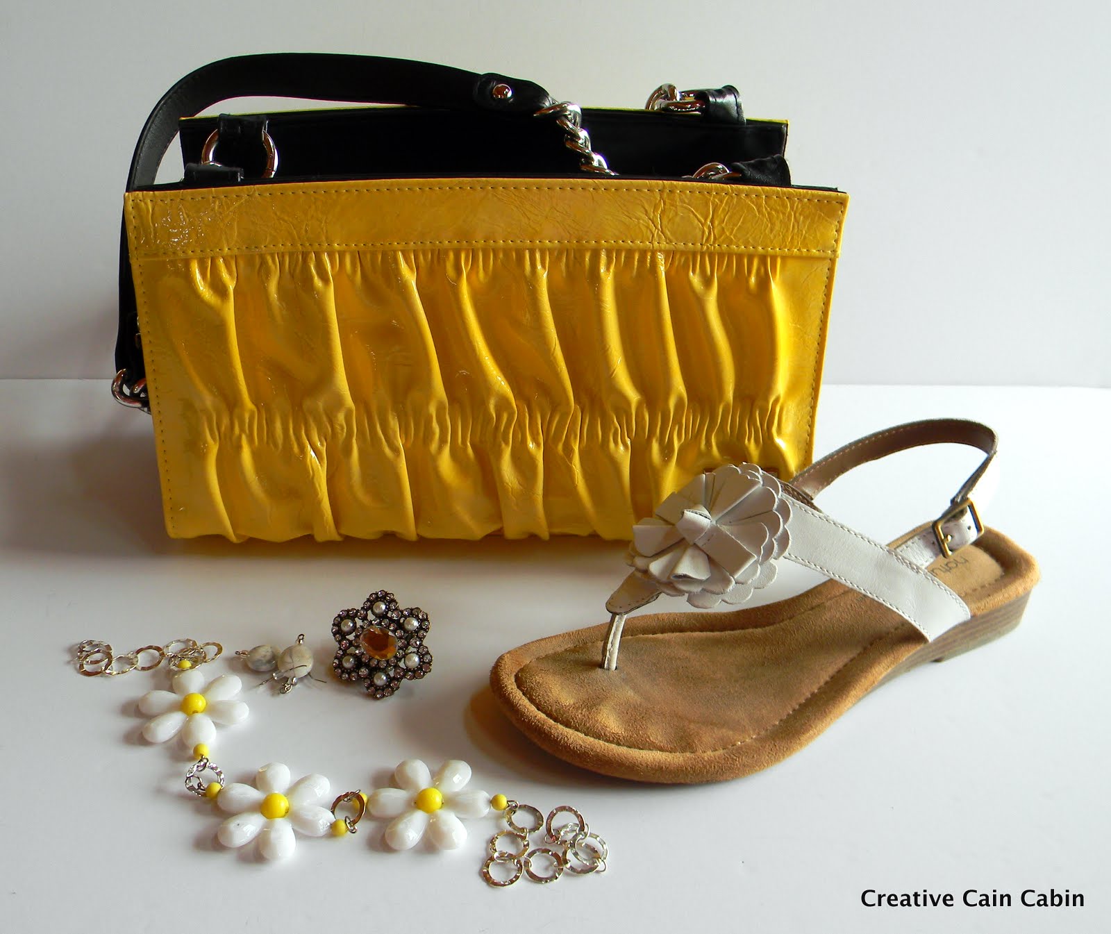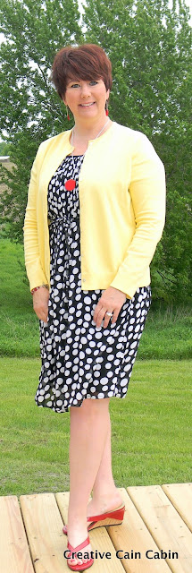 I love the polka dot dress with the yellow and red! The accessories too you are very talented!