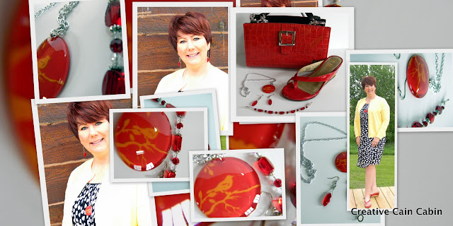 I love that red necklace that you made! So well coordinated and you have some great shoes! How do you make those awesome photo collages? Is it a template for photoshop? Awesome!