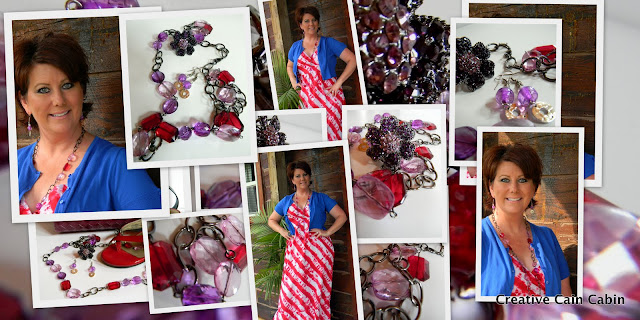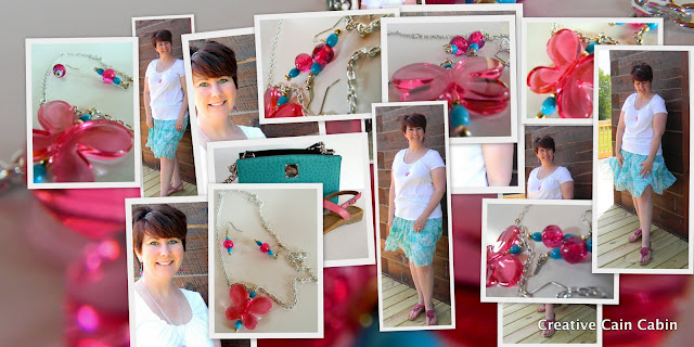 Your jewelry is knocking me out this week. I love the daisy necklace, the butterfly necklace and those gorgeous red items. They look fabulous with your great outfits.