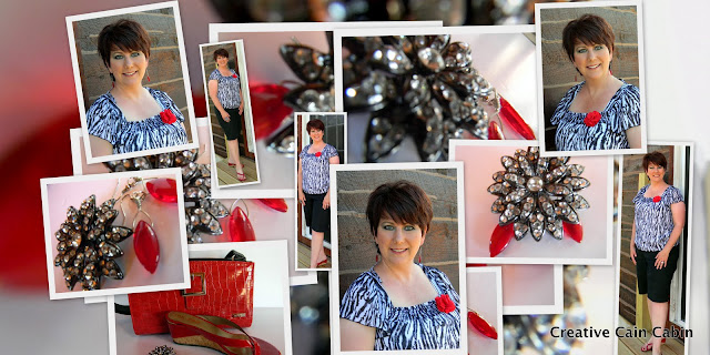 love your outfits – I like a lot of the jewelry you have made, esp. the red earrings. I also like the way you put together your photo collages.