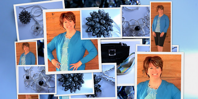 Love your creative talents. You look great in the blue it is amazing. Another that I really liked was the orange. You do beautiful work not just the jewelry but putting it all together with an outfit.