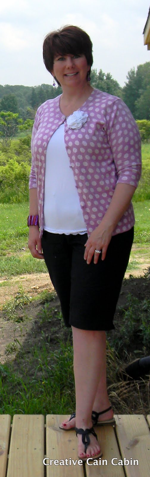 Really love the black and white polka dot dress! And again, those Lands End cardigans are made for you.