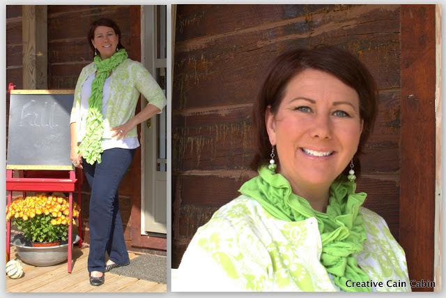 All the outfits are cute, but I love the green and white jacket with the scarf best.